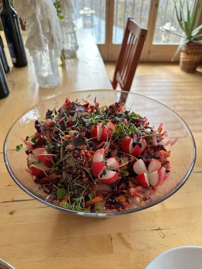 Uno de los pilares de esta vivencia fue, sin duda, la propuesta gastronómica de Silvia Sampons y su proyecto Cuina Anònima. Gracias a su cocina basada en ingredientes ecológicos, de temporada y preparados con atención plena, cada comida se convirtió en una experiencia sensorial y nutritiva, que acompañó perfectamente el tono del retiro.